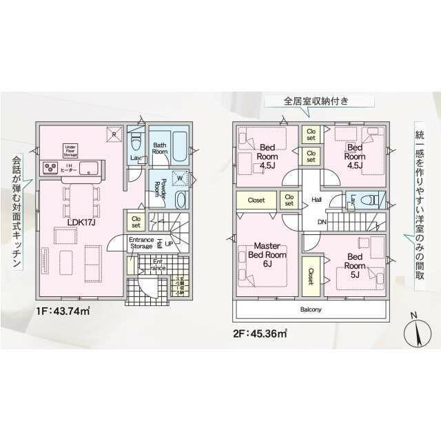 | 設備 | カウンターキッチン システムキッチン 床下収納 モニタ付インターホン 複層ガラス 浄水器 IHクッキングヒーター 3口以上コンロ 浴室乾燥機 人感センサー付照明 火災警報器(報知機) トイレ2ヶ所 | ||